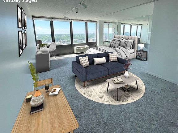 Experience the spacious studio with breathtaking Western views and expansive living, dining/office, and bedroom areas. This updated unit features new Hunter Grey carpeting, fresh paint, and a stylish white subway tile backsplash. Enjoy the luxury amenities, including two lighted tennis courts, an indoor pool, a fitness center, and 24-hour friendly door staff. Application Fee: $35 Non-Refundable Move-in Fee: $750 Non-Refundable Deposit: $500 *Photo is virtually staged *No Pets Fee: $750.00 Condo Association Non-Refundable Fee, $500 Non-Refundable Cleaning Move Out Fee. $35.00 Zillow Application Fee.