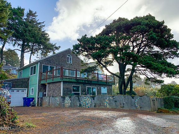 House and a rental unit! Green detached studio ADU rents for $850.00 per month. Ocean views and amazing sunsets await on this unique quarter acre property in roads end. Main house has warm cozy beach vibe, and beautiful english style garden yard. Huge decks that wrap around 3 sides, west deck has a fire pit. Main house has 2 official bedrooms but owner uses the loft as a large master bedroom.