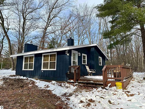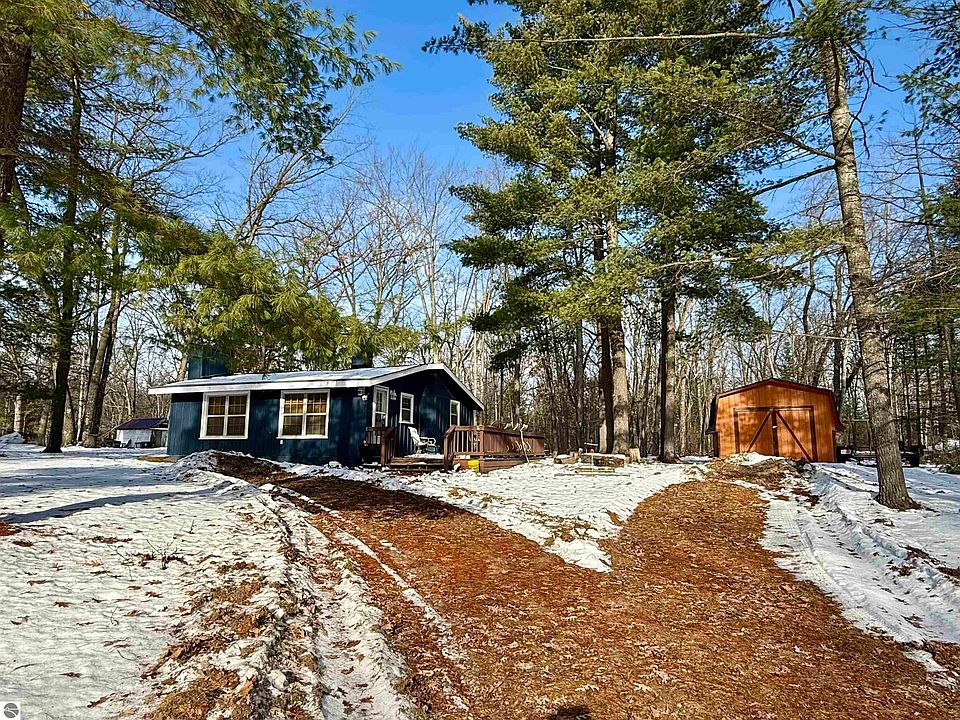 Adorable and full of rustic charm, this 2 bedroom, 1 bath cabin sits on a peaceful 1.5 acre setting and offers the perfect up-north escape. Vaulted knotty pine ceilings, real wood trim, and laminate flooring create a warm, welcoming atmosphere. The propane fireplace adds cozy ambiance, while a propane wall heater keeps the cabin comfortable year-round. Step outside to enjoy the deck—ideal for morning coffee or relaxing after a day outdoors. A handy storage shed provides extra space for gear and tools. Conveniently located near many inland lakes and state land, this cabin is a great spot to unwind, explore, and enjoy everything Northern Michigan has to offer.