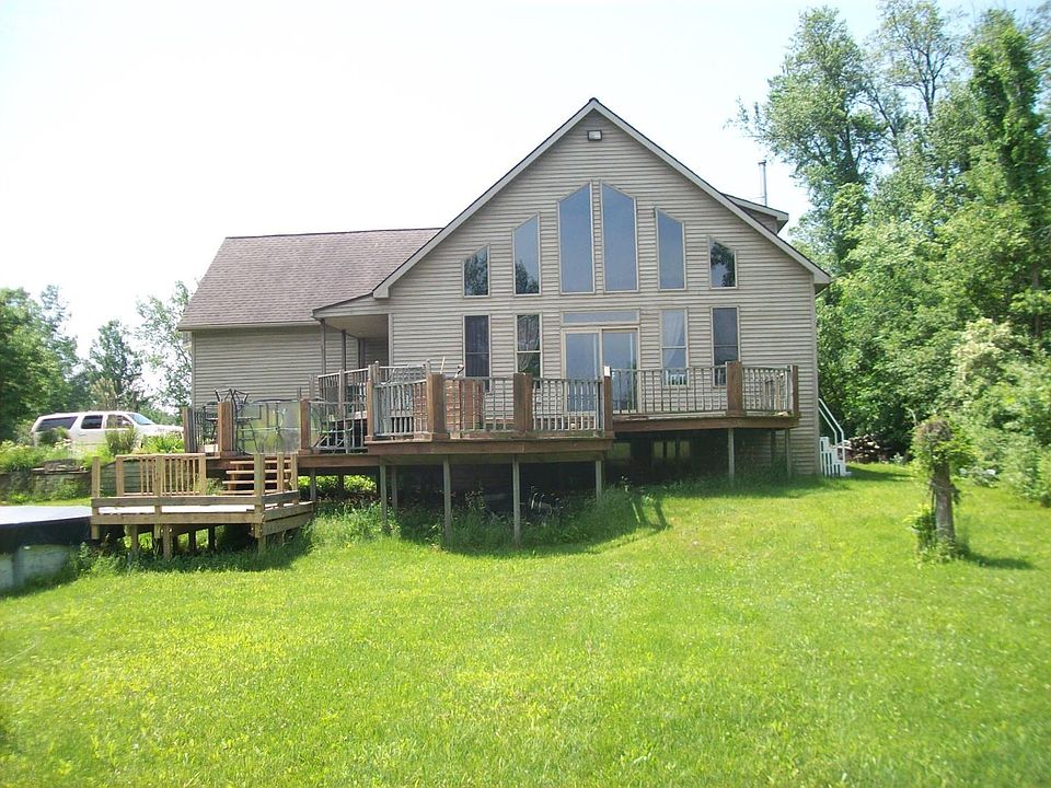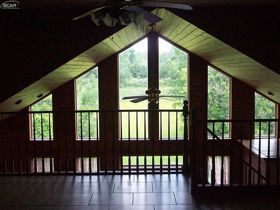 Beautiful wood flooring in open contemporary style home with lofted area, over looking pond on 6 acres with extra garage (14x16) and also a pole barn (24x30), private setting, all appliances stay family room with wood burner. There is an additional 14+/- Acres The price for it all is $229,900.