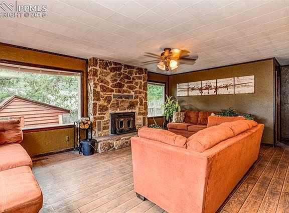MOUNTAIN LIVING! Take a breath of fresh mountain air everyday at this Cascade property- Away from the hustle & bustle of the city but just a quick drive to your modern conveniences in the Springs or Woodland Park. The home features a large, stone, wood-burning fireplace to heat up the house on those cold winter nights, flagstone patio space in the back with a built-in fire-pit, beautiful mountain views and mature trees all around. Main level bathroom has been remodeled. The lower level has a separate entrance- could make a great rental, airbnb/vrbo space. With a little TLC this property will shine and make a great investment or a perfect first home.