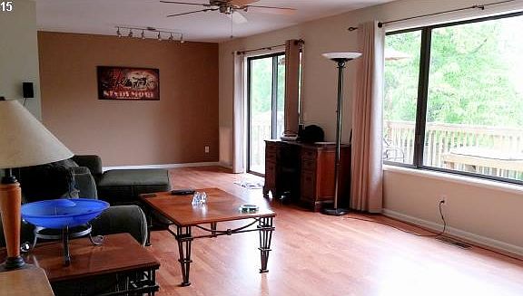 Located in quiet Cross Creek neighborhood on a private corner lot. Excellent views of green space. Spacious backyard that backs to green space. Main level has: kitchen, nook living room and dining room that opens to large deck. Upper level has: Master Suite, two bedrooms & 2 baths. Lower level: 4th bedroom, bath, laundry room and large family that opens to lower deck area; easily could be in law residence. New roof and southern facing solar panels accommodate for most of power consumption, even when running AC. wired internet in every room, for ease of use, as well as wifi hotspots