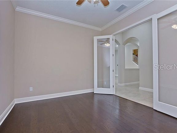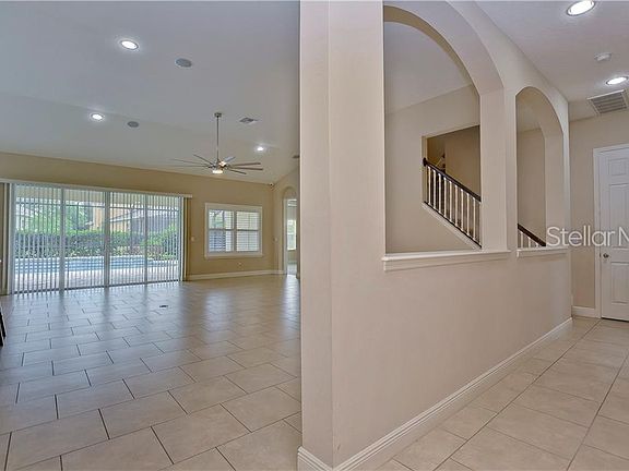 Perfect! WestBay "Biscayne III" in Starling at FishHawk Ranch! You are going to fall in love from the moment you arrive with the desirable elevation, stone accents, pavered driveway & entranceway all accented by lush landscaping! The wonderful open concept floorplan is perfect for today's lifestyle & the upgrades this home offers will impress the most discerning buyer! Upgraded lighting! Through the front door you will notice the neutral paint, crown molding & wide baseboards - giving HGTV vibes! Find the office with double French doors, this is the perfect quiet spot! Moving along you arrive at the main living area of the home with dining area. This spacious area with tile floors will be your favorite place to gather family & friends! The kitchen features gorgeous 42" espresso cabinets topped with crown, walk-in pantry, oversized island with breakfast bar, stainless appliances & granite counters! The wonderful master suite boasts double trey ceiling & a walk-in & separate wardrobe closet! The attached bath with garden tub, spacious walk-in shower will be a private space to relax! Downstairs there are another 2 bedrooms & 2 baths on a split plan! Upstairs you will find a full bath along with a bonus room & another bedroom, perfect for guests or an older child! This split floor plan allows for privacy for all! Great schools and amazing community amenities! The oversized screened & pavered lanai with sparkling swimming pool & landscaped backyard with total privacy, this will be your outside oasis for sure!