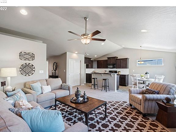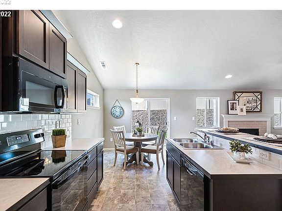 Open Kitchen with lots of counter space, quartz counter, island, and GE S/S appliances, gas stove, painted cabinets with under cabinet lighting. Living room with vaulted ceiling. MA suite separate from front bedrooms w/ vaulted ceiling and 2 walk-in closets. Attached Bathroom w/ dual vanity sinks with quartz & walk-in shower. Cabinets in laundry room, Home includes A/C, 12x12 covered back patio, lap siding, full landscaping. Under construction; pics of like home. Home completion time Feb/Mar