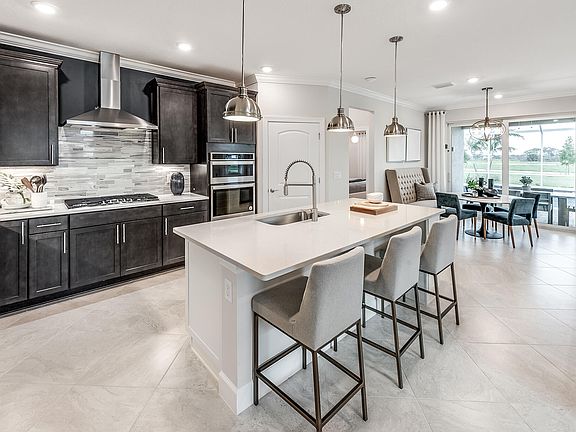 Move in February to March of 2023: Elegantly designed 3 bedroom + flex room Mystique home. The extended gathering room is perfect for entertaining. Gas appliances, wall oven + upgraded finishes adorn your gourmet kitchen. Double slider doors lead out to your screeded lanai. Nestled on a small col-de-sac street.