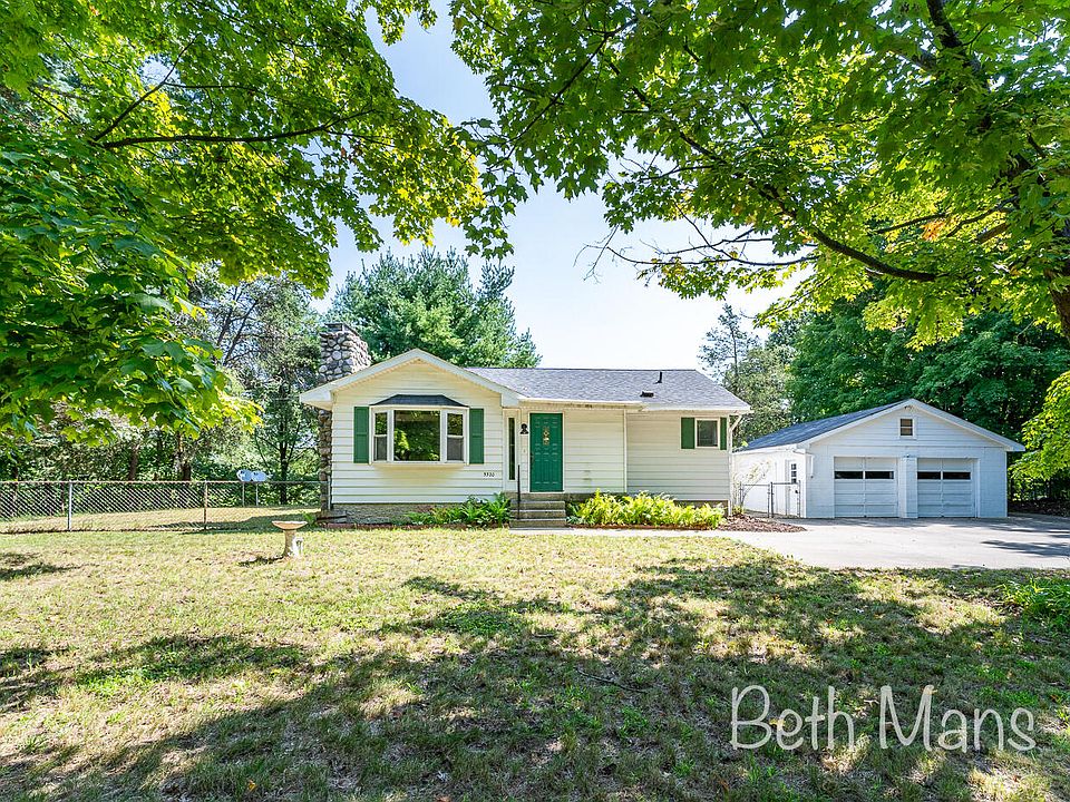This appealing ranch style home sits on a private country setting nestled on over an acre. Enjoy the fully equipped eat in kitchen, living area with fieldstone fireplace & wood burning insert, 2 bedrooms & full bath. The daylight lower level is finished with a bedroom, office and full bathroom. The utility room and the laundry room provide ample room for storage. The 2 car detached garage provides additional storage space. A portion of the property is fenced and is equipped with a storage shed. There is plenty of open area and wooded area to add your own landscaping ideas. Rockford schools, Cannon Township taxes. This property is in rural development eligible for qualified buyers-0% down. Take possession at close.