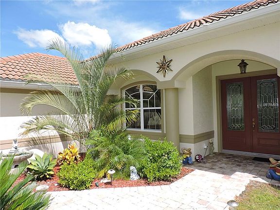 Extraordinary Find in Gulf Cove. Attn: Boat/RV or Car Enthusiasts-Separate 1600 Sq Ft building with two overhead 10x12 hurricane doors is now available. (room for 6 special cars) Come see this lovely salt water heated pool home with water feature on a 3 lot mini estate. Home boosts a NEWER 2009 Tile roof, Newer 2014 AC, Samsung front loading washer & dryer, accommodating SPLIT FLOOR plan, Double Tray ceiling and Pocket 8 ft Sliders in living room, Hurricane Shutters, paver driveway/walkway/pool area. A Chef Delight Kitchen, includes Stainless appliances with an upright freezer, lots of granite and cupboards, breakfast bar, large breakfast nook with aquarium window overlooking the Lanai & pool. Master suite has walk-in closet, sliders to the pool plus walk-in shower, 2 granite raised vanities and separate tub. Home has 17" tile on the diagonal, Medallion in the entry by the special glass French doors. Celebrate the gracious Florida Life Style in this serene retreat. The included 3rd lot- imagine what you could. See it today!!