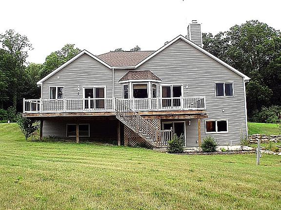Custom Ranch on 3.15 Acres~~Set Back off Rd~~Open Fl. Plan w/ Volume Ceilings~~Hardwood Thru-out 1st Floor~~Perfect Fl. Plan for Entertaining~~Great Rm w/ Nat. Fireplace Opens to Cherry Kit & Bright Breakfast Area~~French Doors to Den~~Cathedral Master Suite w/ Doorwall to Deck, Spa-like Bath, Organized W.I.C.~~Huge 1st Fl. Laundry~~Fin. Walkout L.L. w/ 4th Bedrm,. Rec Rm., Full Bath~~Lrg Prvt Composite Deck~~Subject to Bank Approval of Short Sale~~