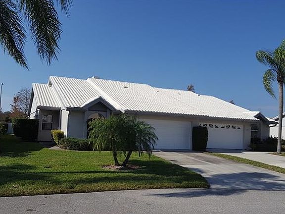 Beautifully maintained 3 bedroom, 2 bath, 2 car garage end unit villa in the center of Sarasota. 1,800+ square feet under air, family room with wood burning fireplace is open to the eat-in kitchen with stainless appliances, granite counters and wood cabinets. Formal living room / dining combination. Spacious Master suite offers tile floors, 2 walk-in closets, double sinks and separate tub & shower. Tile floors in the living areas, high ceilings, inside W/D, circulating hot water heater for instant hot water, extended screened lanai with in ground hot tub. Just steps to heated community pool, clubhouse and tennis courts. Close to major shopping, Doctors Hospital, I-75 & Gulf Beaches. Furniture may be purchased separately.