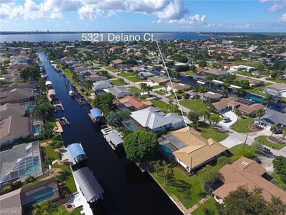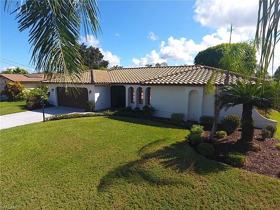 Waterfront Yacht Club Pool Home with Sailboat Access. No lock and no bridges. Make this your Forever Home or Perfect Snowbird Retreat. Boater's Dream Location as you are just minutes from Open Water and on to Sanibel, Fort Myers Beach and beyond. This 3 bedroom, 2 bath Property features mature landscaping, a double door entry, split bedroom plan, 2 living areas, newer tile roof, large laundry room with utility sink, pass through kitchen window and multiple pocket sliders that lead to an oversized Entertainment Area overlooking the water with large pool and covered, caged Lanai. Just a few steps to your dock to enjoy fishing, kayaking or hop onboard your boat. This is Florida Living at it's Best !