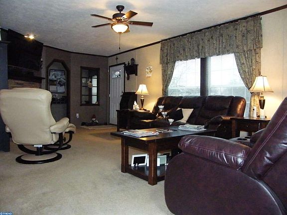 You won't believe your eyes! This 3 year young, custom-built modular home with over 1,800 sq. ft. is incredible! The spacious master suite with walk-in closet and sliding glass doors that lead out to the 10' covered patio is just calling your name, as is the HUGE master bath with double sinks, soaking spa tub, ceramic tile shower with double shower heads, and an electric fireplace/Entertainment Center! You will never want to leave! The state of the art kitchen comes complete with tons of quiet close cabinets, ceramic tile and laminate counters, SS appliances, built in wall oven and microwave and a double sink island overlooking the dining area and family room with stone wood-burning fireplace. Open Concept living at it's best! On the other side of the house you will find a convenient office area, 2 additional bedrooms and a full bath. The laundry room is equipped with a sink and plenty of storage space as well as a door leading to the front deck. There is also a convenient shed with electric out back. All of this on a private, quiet lot overlooking open space. This home features super efficient electric heat and AC, 200 amp electric service, upgraded brushed bronze lighting fixtures and faucets, 50 gal. hot water heater, Thermal Pane Windows, and so much more. Community features pool and club house and is close to most major highways and public transportation. Crazy great house at an incredible price! Lot fee covers Water, Sewer, Basic Cable and Community Pool. There is also a clubhouse available for a fee. (Laundry room is slightly modified from attached floor plans.)