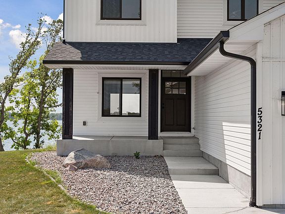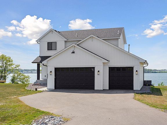 Sharp, clean line, 4 bedroom, 4 bath, two-story overlooking fantastic panoramic big water views of Howard Lake and finished daylight lower level with epoxied floors. Stainless steel kitchen appliances, unique accent lighting, center island with Quartz, hard surface counters. Double vanity primary bath and upper-level laundry, Great room / Living room with gas fireplace. All good-sized open rooms, heated 3-car garage and concrete front porch. Easy, quiet lakeside living with convenient access.