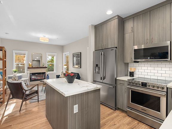 Enjoy a fun and carefree lifestyle in this luxury condo with a private backyard. This adorable condo has beautiful high-end finishes with quartz counters, stainless steel appliances, two big bathrooms with quartz and tile. Two beds and two baths make this home a sweet set up for roommates. Or use your extra bedroom as a kid's room, home office, guest room, home gym, etc. Primary suite has ceiling fan, lots of windows and a heated bathroom floor. There is a full-size stacking washer and dryer in a hall closet. Both baths feature a beautifully tiled tub shower combo, pretty quartz counters and tile floor. Enjoy outdoor living in your private yard and large patio space, deeded for your use only. Or, if you want company, join the community fire pit and outdoor dining space in the front yard. Nice quiet street in a cute neighborhood, no freeway noise. Easy street parking. 53rd crosses the freeway and is also a bike street so access to Providence Medical Center and all of SE Portland is super easy. Or go a few blocks North into the Hollywood District for your fun and shopping. You might have trouble finding the video and 3-D tour and various property search websites, here's how: On popular search site "R" scroll past the map and the payment calculator, past the offers for a live tour and other advertising, to find the "Property Details" section. Expand that section and find the virtual tour link under "Interiors." On popular search site "Z" scroll past the map, past offers for a live tour and other advertising, to the "Facts and Features" section. Hit "show more" to expand, then go to the end of the interior section to find the "View Virtual Tour" link. Once on the virtual tour website for this property, there are tabs for video, 3-D tour, more photos, and more info about the property. Trust me, it will be worth it!