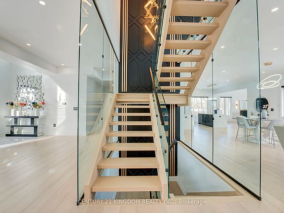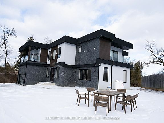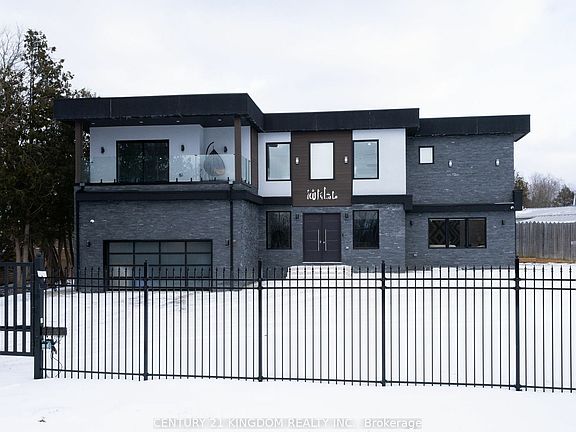 This is the one! Among the finest homes in Durham Region, this custom gated estate boasts over 8,700 sq. ft. of luxurious living space, 4 balconies, and space for over 40 vehicles. Step into a grand foyer with a breathtaking 20-ft ceiling, a dazzling 12-ft chandelier, and a stunning floor-to-ceiling glass staircase. The spacious living room features a double-sided fireplace, striking accent walls, while the open-to-above family includes a sleek modern TV wall unit. Over 40 remote blinds and speakers t/o house. The dream kitchen includes dual islands, Jenn Air appliances, a 48-inch cooktop, and dual pantries. Upstairs, 4 spacious bedrooms each with balcony, ensuite, and large walk-in custom closets, with a second-floor laundry for convenience. Dream basement impresses with a theatre, gym, rec room, and guest suite. Step out to a 400-sq.-ft. Zen garden leading to the expansive backyard. Legrand Adorne switches Dual furnaces & ACs, state-of-the-art water purification and much more. This mansion is truly a masterpiece of modern design excellence and top-of-the-line finishings.