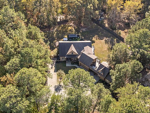 Nestled on a private and wooded 1.14-acre lot in Wake Forest with no HOA, this builder's personal home is truly one-of-a-kind. Designed as a sprawling ranch retreat, it offers a blend of comfort and entertaining with a 2-car garage, 2-car carport, and multiple outdoor living spaces. From the expansive deck with outdoor kitchen and gazebo, to the elevated rooftop terrace and the separate tiki bar building, every detail invites relaxation and gathering with friends and family in style. Step inside to a bright and open floor plan filled with custom details and timeless craftsmanship. The welcoming foyer with trey ceiling and detailed millwork sets the tone, leading into a formal dining room that is currently used as a cozy sitting room. The spacious family room features coffered ceilings, built-ins, and a stone fireplace, while the chef's kitchen is the heart of the home with an oversized island, granite countertops, gas cooktop, custom cabinetry, walk-in pantry, and a built-in breakfast nook bathed in natural light. The private owner's suite is a true haven, showcasing a tray ceiling, abundant natural light, and direct access to the deck. The spa-like bath offers dual vanities with modern glass vessel sinks, a soaking tub, and a walk-in shower, all leading into an enviable custom closet that feels like a boutique dressing room. Thoughtfully designed with a center island, dedicated shoe storage, built-in drawers, open shelving, and display space for accessories, this closet combines elegance with function. Just beyond, a beautifully appointed laundry room adds convenience with custom cabinetry, butcher block counters, and stylish finishes. On the opposite side of the home, you'll find a second spacious bedroom suite that lives like its own owner's retreat — ideal for multi-generational living or as a private in-law suite. Complete with direct deck access, a beautifully finished bathroom with dual vanities, soaking tub, and walk-in shower, it provides comfort, privacy, and flexibility for guests or extended family. One of the bedrooms has been thoughtfully designed as a home office, offering flexibility to suit your lifestyle. Upstairs, a private retreat with full bath offers flexibility as a guest suite, teen space, or office. From here, step out onto the expansive second-floor terrace — an ideal spot for relaxing outdoors in privacy. On the other side of the terrace, a dedicated exercise room provides the perfect space for a home gym or wellness area, bringing convenience and versatility to everyday living. One of the most unique features of this property is a separate structure designed for fun and relaxation — a fully finished tiki bar! With its tropical flair, built-in bar seating, lounge space, and screened-in porch, it's the perfect place to gather with friends or unwind after a long day. The structure also includes covered outdoor seating below, extending the entertaining options rain or shine. This property offers a lifestyle you won't find anywhere else. Schedule your private showing today and experience all that this exceptional home has to offer.