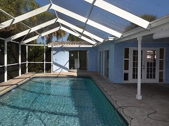 This stunning 3 bedrooms 2 bath home is situated in a prime location with the perfect water view. Enjoy those hot steaming nights in your very own swimming pool that is located inside a screened in patio. There is no getting around the interior needs some work. However, this one also has a wide open floor plan with endless possibilities