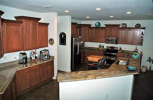 This house has it all, over 3500 sq. ft. of luxury located on large lot on lake (95X161) in a nice newer community with clubhouse. Large kitchen with granite and undermount sink, staggered kabinets, great stainless-steel appliances, double oven. An enormous pool / spa area with paver pool deck, large area under roof, spa and pool are heated by solar heat and energy-efficient heat pump, salt-system and uv-light, de-filter. 4 bedrooms, 2 1/2 bathrooms, den, loft, formal dining room and formal living room offer great view over lake.