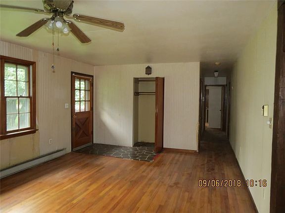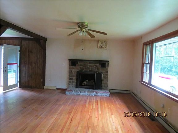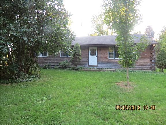 Log sided ranch home with almost 2 acres, public water connected. Semi private lot with fireplaced living room, hardwood floors throughout. Forced air heat, central AC, additional wood stove in basement