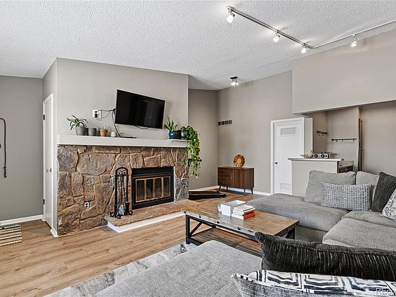 Welcome to this lovely penthouse condo in desirable Wood Creek! The well laid out open floor plan flows seamlessly throughout. Upon entering you are greeted by a spacious living area featuring a wood burning fireplace for those chilly Colorado winter days. Adjacent to the main living area you will find french doors leading to the second bedroom and private balcony. The primary bedroom is an ideal space with a set of double closets, and a private entry to the bathroom. In unit laundry room has extra storage cabinets above washer/dryer. Plenty of storage throughout this condo, including a private storage shed on the balcony and extra loft storage in the utility room. Enjoy this great location in Arvada comfortably nestled near walking trails, parks, and easy access to highways. This low cost, well run HOA does a great job maintaining the grounds and community pool. This gem will not last long!