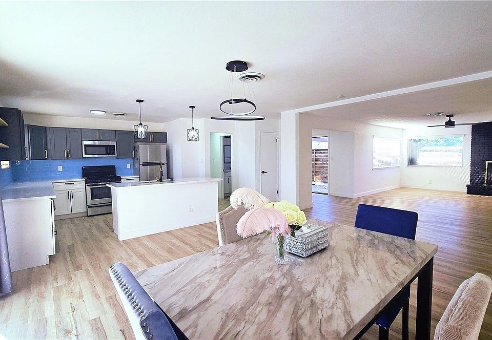 Stunning, fully-rehabbed single-story home on a generous lot with a private courtyard. This turnkey 3-bed / 2-bath gem features a modern kitchen with stainless steel appliances, quartz countertops, brand-new White Shaker cabinets and sleek black fixtures. Interior upgrades include fresh paint throughout, durable vinyl flooring and elegant 5" baseboards. Bathrooms have been remodeled with custom tile showers. Outdoors is an entertainer’s oasis: huge pool, artificial turf and a tiled covered patio. No HOA. Excellent location — minutes to Las Vegas Blvd (The Strip) and Chinatown, with vibrant shopping and dining nearby and highly rated middle schools. Conveniently located near medical centers such as St. Rose Dominican — Sahara Campus and Sunrise Hospital & Medical Center. Owner-occupant or investor — this property checks both boxes.