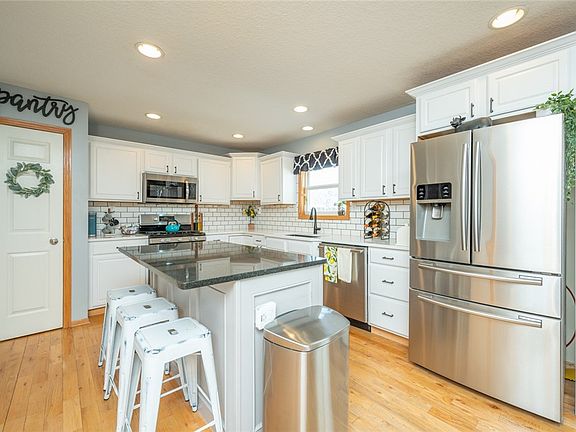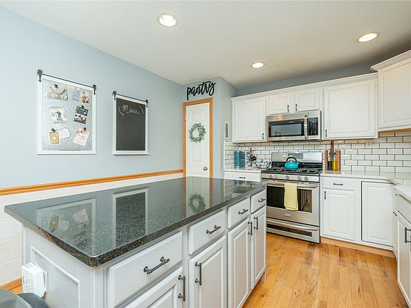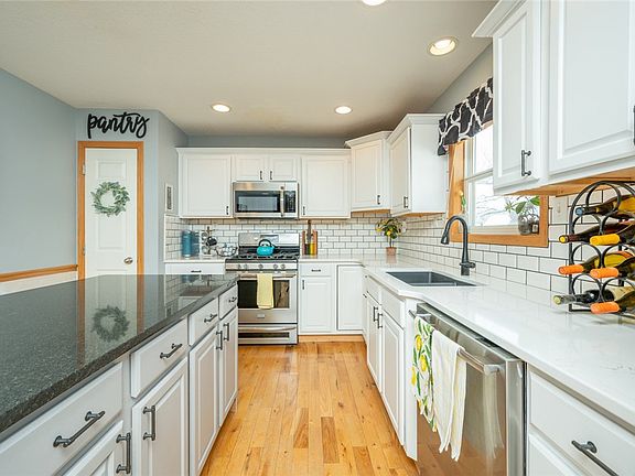 Beautifully updated Northview Estates home located on a quiet cul de sac and within the popular Johnston School District. Just a block away from the elementary school and walking trail. Large lot with privacy fence, mature trees, and a huge 540 sq ft deck with an additional concrete patio.3 car garage. Over 2500 sq ft of finish with 4 beds, 3.5 baths, and a large office on the main that could be turned into a 5th bedroom. Real hardwood floors on the main level. The basement was finished in 2022 and has daylight windows, a family room, bed, and bath as well as a tornado room built to FEMA standards. New roof in 2019. Fresh paint throughout including painted kitchen cabinets, shiplap wall, and painted built-ins.Many new fixtures and hardware. New quartz kitchen counters in 2022, subway tile backsplash, and granite under mount sink. New rear slider door with built-in shades. New wifi enabled garage door opener units. All appliances stay including the newer Samsung washer and dryer.