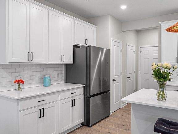 The chef-inspired kitchen features quartz countertops, high-end stainless steel appliances, and a generous island—perfect for meal prep or entertaining. Plus, the walk-in pantry provides abundant storage space, making organization a breeze.