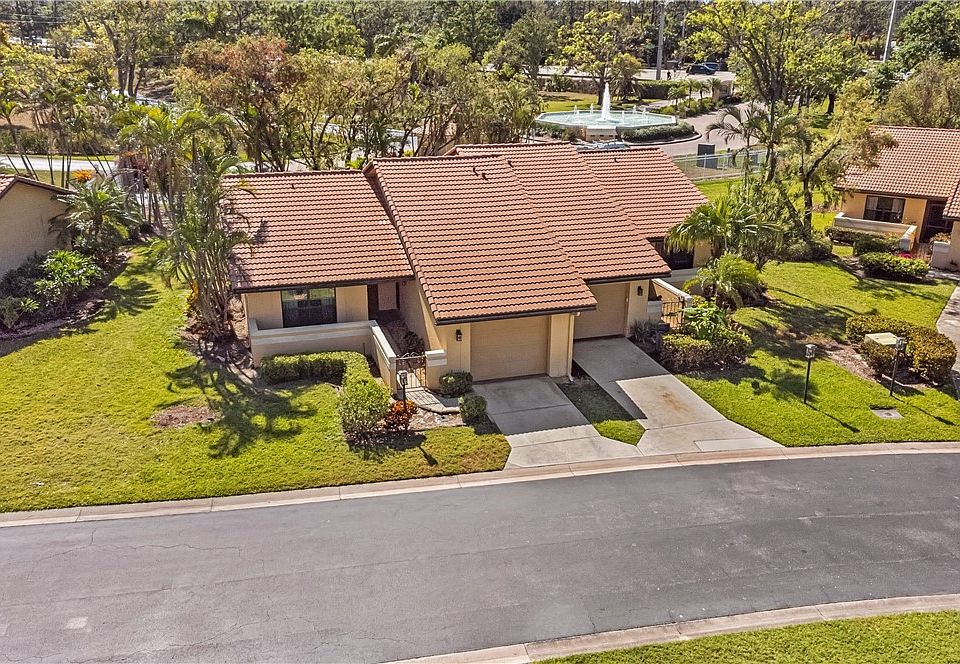 You’re now living at Governors Island in the Pinebrook Lakes Community, a pristine exclusive gated community. A two-bedroom, two-bathroom condo with a tiled roof, and attached one-car garage. Both bedrooms can easily accommodate up to a King-sized bedroom set and both have walk-in closets. French doors open to your den or Florida room, which adds 132 additional sq ft. Updated impact glass windows. New A/C unit installed in 2021, and all new A/C ducts in 2022. Comes with a fully equipped kitchen, high-end GE slate appliances, and large-format ceramic tile. Water/Trash/Cable/Internet and lawn care are all included in your monthly assessment, perfect for those on a fixed income. Considering the location – proximity to shopping, restaurants, movie theater, the airport, and the beautiful condominium – serene pool area and its tranquil setting – all these combine to make it a perfect 10.