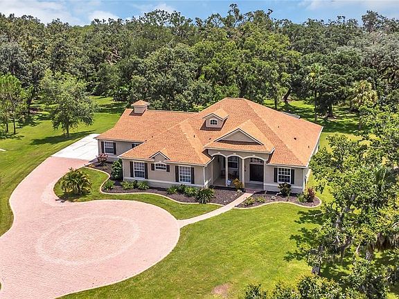 ONLY HOME WITH IT ALL! Pool • 1+ Acre Lot • Cul-de-sac • No CDD • Conservation Views • New Roof 2022. Don't miss out on this custom-built home on over an acre with pool, conservation and wildlife views! Tucked away at the end of a quiet cul-de-sac, this one-of-a-kind home is a rare gem offering privacy, charm, and space to breathe. Situated on just over an acre of beautifully wooded land, this 4-bedroom, 2 full bath, 2 half bath residence blends comfort with natural beauty. Step inside to discover a spacious open-concept layout, perfect for entertaining or enjoying quiet evenings at home. The heart of the home features a bright and airy kitchen that flows seamlessly into the dining and living areas, all overlooking your private backyard oasis. Out back, a sparkling pool invites relaxation, while deer often wander through, creating a peaceful, almost storybook setting. Feed and watch them from your patio — it’s a daily delight! A new roof installed in 2022 offers peace of mind, and thoughtful touches throughout the home make it as functional as it is beautiful. There's also a buried propane tank which fuels the fireplace and has a hookup outside the pool bath to provide the possibility of an outdoor kitchen with a grill in the future. With generous bedrooms and bathrooms, and plenty of room to spread out, this property checks all the boxes for those seeking space, serenity, and something truly special. Don’t miss this rare opportunity to own a slice of nature with all the comforts of home. SAVE MORE: 1% lender credit (based on loan amount) toward closing costs or rate buy-down with seller’s preferred lender. Ask for details!