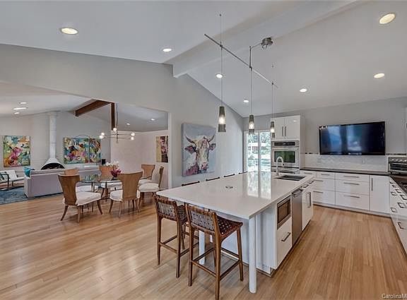 Love midcentury modern design and "low slung California style" then this is the Sherwood Forest home is for you! Nicknamed the Fun House on '17 Modern Home Tour this beautifully restored midcentury modern ranch is perfect for everyday living or entertaining a crowd. Rare find large 3171 sq ft ranch with 4 bedrooms, 3.5 baths. New glossy white kitchen, sustainable bamboo floors, high ceilings and the open floor plan offer modern living at it's best. You'll love the iconic white Malm fireplace, vaulted ceilings & floor to ceiling windows. NEW: Kitchen '14 / Roof '13 / Furnace '13 / water heater '18. Double oven & induction cooktop. Quiet street perfect for walking dogs and private backyard great for a BBQ or maybe add a pool! Modern concrete/pea gravel patio and covered grill area. Homeowners have the original architect's plans and ask about the baby owls Hootie and the Blowfish! Close to many private schools, Southpark, easy Uptown commute area is fast becoming Charlotte's go to area.