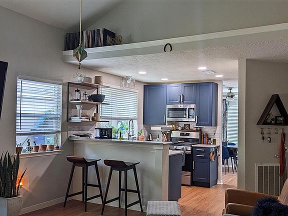 Welcome to 5322 Summer Drive, this expansive 2 bedroom, 1 bathroom home is a light-filled living space adorned with soaring ceilings that create an open and inviting atmosphere. The residence boasts elegant wood-grained flooring that seamlessly flows throughout, enhancing the warmth and character of the home. The kitchen showcases a suite of stainless steel appliances, all thoughtfully maintained and in excellent condition. Correctly positioned windows are throughout the property to light grace each room, casting a stylish ambiance. The generous bedroom is a standout feature, featuring a large glass double-door that floods the space with natural light and either exit to the back patioâ "a closet with dual slider paneled doors offering ample storage. The fresh bathroom is a true highlight, featuring exquisite granite countertops, an undermount sink, a well-appointed mirror, and contemporary lighting fixtures. Step outside to a grand wooded patio covered by a large Oak tree, excellent for enjoying Austin weather. This private outdoor oasis also provides a tranquil, relaxing setting with a fire pit and seating outside on those cool fall nights. Residents will have access to a superb community pool area with a plunge pool" and a rejuvenating hot tub, perfect for unwinding after a long day. Situated in this quiet, well-maintained complex, the residence offers proximity to many new shops, restaurants, and major employers such as Oracle. The University of Texas campus is a mere 5 miles away, and downtown Austin is even closer, making this location exceptionally convenient. Don't miss the opportunity to make this fantastic property your new home."