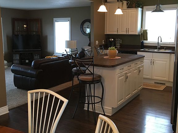Recently remodeled 3 bedroom home with approximately 1750 square feet of finished living space. Beautiful, quiet country setting just 5 minutes from town on blacktop road! Home sits on 1.75 acres of beautifully landscaped lawn. Complete remodel in 2008 including kitchen, bathrooms, flooring, finished basement, plumbing, electrical, water heater, central air/heat pump. Beautiful open floor plan with 12' ceilings in kitchen/dining, living room with open staircase, first floor master bedroom, large bathroom and heated three-seasons room. Upstairs is a large, open bedroom with vaulted ceilings and a half bath. Finished basement has egress windows and includes large family room and another bedroom. Large laundry and storage area completes the lower level. All kitchen appliances and window treatments stay. Stay cool in the summer with central air and significantly reduce propane bills in the winter with the heat pump! Must see!