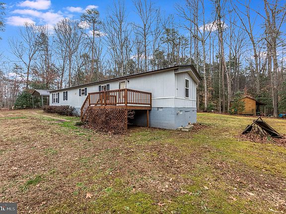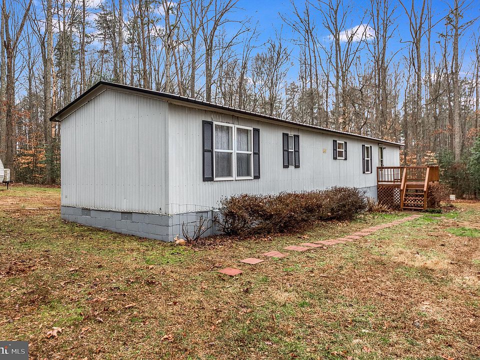 Awesome 2 bedroom 2 full bath home on a cul-de-sac street. Excellent condition. Everything all on 1 level. Sits on a crawl space. Open floor plan. Spacious bedrooms with walk in closets. Full size washer and dryer. Seller is original owner. Newer roof and new HVAC. Home sits off the road on 4.6 acres. Lots of privacy. Wooded in front and in back with a stream running through it. Car port for parking. 2 very large sheds for workshop and storage. Camper in backyard does NOT convey with property. Septic tank has been inspected and pumped Feb. 2024. Minutes from 95 and shopping. Very close to Fredericksburg and Lake Anna. Will qualify for all loan types.