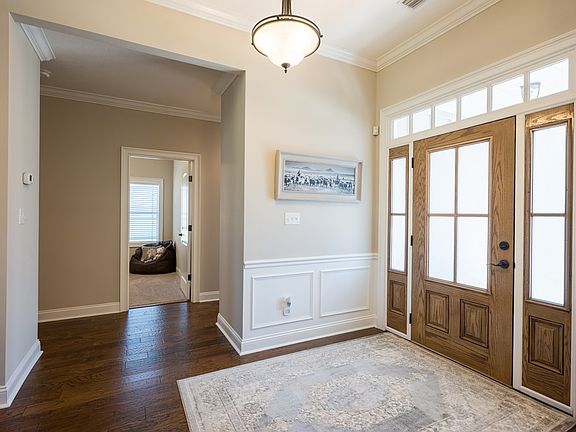 Absolutely immaculate beautiful 4 BR 2 BA home with lake rights to a natural 225 acre lake. Large inviting front porch. Step inside to a large great room with tray ceiling & fireplace & formal dining room both with hardwood floors & lots of light to make this home so inviting. The Kitchen has tile back splash ,granite tops ,pantry, breakfast bar, stainless appliances, & wood floors. Master bedroom is large with lots of light, tray ceiling, opening to a spa bath with tile shower , dual vanities with granite tops & soaker tub. There are two walk in closets & linen closets Three nice size guest bedrooms share a large hall bath with granite tops. Very large laundry room will accommodate a washer,dryer, refrigerator & freezer. This home is on over a 1/2 acre lot this huge back yard is perfect for a pool. Nice covered back porch perfect for grilling out or sipping your morning coffee in the mornings. There is a community play ground with covered seating and fitness equipment & track. The lake is full of bass and speckled perch. You can fish, kayak, or just enjoy the view.