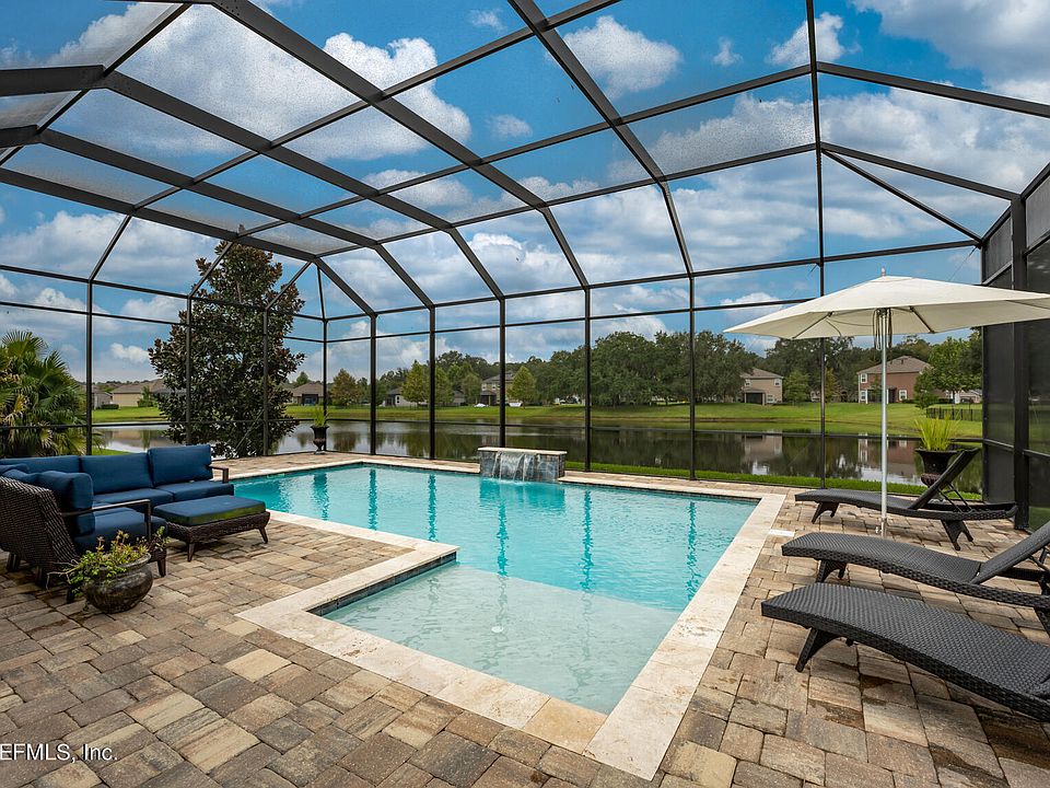 Gorgeous French Country Style 4br/3.5ba plus office with SqFt 3224 POOL HOME located on an over half acre beautiful Lake Front lot in the highly desired gated community of ''Tidewater''. This Beauty offers an open and bright floor plan concept w/ 12'' ceiling and 9'' doors and luxury vinyl flooring throughout. The gourmet kitchen includes 42'' cabinets, SS appliances, oversized island with granite counter tops, double oven, GAS cooktop, recess lights, and an elegant back splash. The oversized master suite leads you into an amazing master bath room retreat. The breathtaking screened in POOL area can be accessed though the master BR and the main living area. This tranquility is a space to relax as well as to entertain family and friends