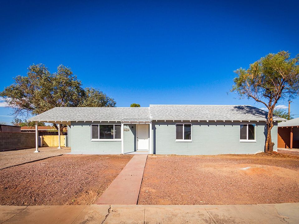 Pristine curb appeal home & beautifully remodeled w/new stunning tile floors, fresh new palette, ceiling fans, patio access from dining area, & open floor plan. Stylish kitchen counters, tiled backsplash, SS appliances, & handsome wood cabinetry w/hardware. New plush carpet/padding in all bedrooms, ample closets, 2 new baths w/designer tile, & interior laundry closet for your convenience. Large backyard w/shade trees, storage shed, & plenty of space for your toys & a pool! Take a tour today & stop renting!