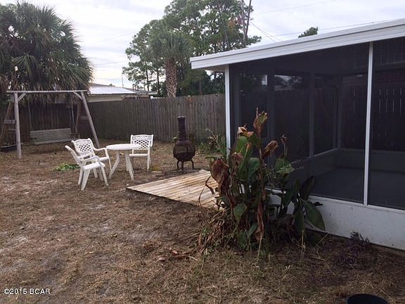 Being sold ''AS IS'' ALL TILE FLOORS, SCREENED IN PORCH, BIG FENCED REAR YARD WITH STORAGE BUILDING. This house is south of Grand Lagoon just minutes from beach. Great buy on a 4-br 2-ba ranch home close to beach and Capt. Andersons and Grand Lagoon. BEST PRICED 4-BR ON THE BEACH PER FT. This is a brick home covered with vinyl siding. Split bedroom floor plan with private rear master suite overlooking fenced in rear yard. No carpet at all. Big master with lots of windows overlook fenced rear yard. Sun porch screened in. private setting. seller has moved out. Vacant EZ show.SELLER WILL INSTALL A NEW METAL ROOF AT FULL PRICE ONLY!!!
