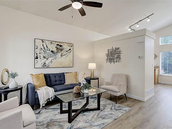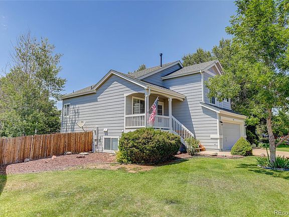 Welcome to this charming four bedroom, four bathroom home located in the coveted and award winning Cherry Creek School District. The property is adorned with a covered front porch which is a fabulous place to simply relax, enjoy a morning cup of coffee, or an evening beverage. The home is very light and bright as it is flooded with natural light from the plethora of picturesque windows and expansive vaulted ceilings. Upon entry, one is greeted with a spacious living room and new luxury vinyl plank flooring extending throughout the main levels including. This area is multi-functional and could also be used as a formal dining room with a sitting area. Just past the living room lies the eat-in kitchen boasting stainless steel appliances, and tile counters. The open floor plan creates a great entertaining space as the kitchen opens into the living room and the adjacent family room which sports a cozy, gas fireplace and access to the enormous deck and backyard for extended outdoor living. A convenient half bath is also found on this level. Venture upstairs to find the primary suite complete with vaulted ceilings, its own private deck, dual closets, and a full bath featuring tile flooring and dual vanities. There are two additional bedrooms upstairs which share a full bath, and an alcove providing a perfect location for a workspace or a homework area. Head down to the basement where one will find the fourth, garden level bedroom, a ¾ bath, and a large laundry room. This bedroom could also be used as a kids play area, gaming room, or flex space as it's quietly tucked away for one's entertainment pleasure. Conveniently located within five minutes of Southlands Shopping area and E470, and just 25 minutes to DIA, this location can't be beat!