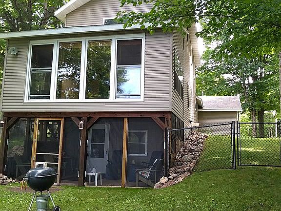 Four bedroom home on 257 acre Pier Lake . Detached garage, wood burning fireplace, walkout basement, screened porch. Approximately 60' of gorgeous sand frontage with aluminum dock. Also included are outdoor swing, dining table/ chairs, beds and dressers. All measurements are approximate. Call 715.571.2681 for more information or to set up a time to view the property.