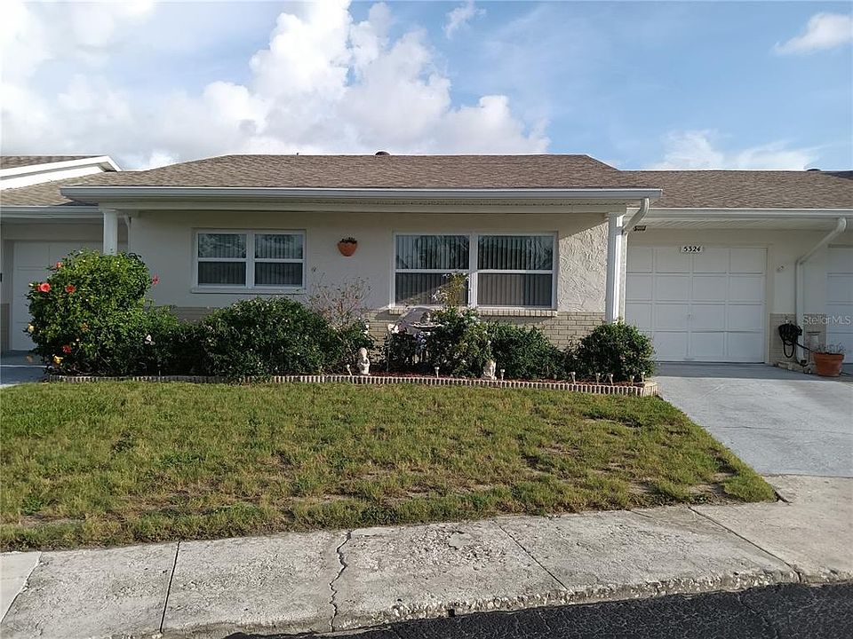 A RARE FIND !!! Maintenance free senior living - one floor condo with attached garage and pool access. 55+ Community tucked away but close to medical, shopping & restaurants. This condo has all new windows, remodeled master bath, ceramic tile thru out with one bedroom has newer carpet. 2024 Approved Budget with NO HOA Increase !! The floorplan features a large great room (living & dining), dinette with built in cabinets w/shelving and lots of storage, interior utility and linen closets, plus a walk- in closet in master bedroom. Exterior has rear concrete slab (great for plants) plus a covered area on front of unit. The low HOA fee ($309) covers water, sewer, trash, roof, and outside maintenance (exterior painting & lawn). Attached garage has extra storage, utility tub, dryer & new washing machine. Located in Non-Flood zone.
