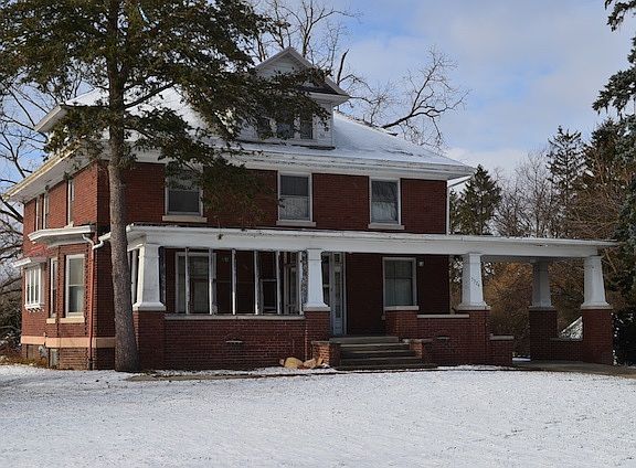 The price stated on this property is the assessed tax value (for MLS purposes). This property is being sold at public auction on Saturday, February 27th at 12:00 noon. This property may sell for more or less than the assessed value, depending on the outcome of the auction bidding. All offers will be accepted on auction day only. Historic 5 bedroom home on full basement w/ detached garage & outbuilding on a 1 acre city lot. This home features 2,900+/- sf of living space, tons of original woodworking, full floored attic and endless opportunities to modernize this beautiful diamond in the rough. Beautiful craftsmanship throughout home, great project home! You enter the home through a large front door with tons of character. The foyer has hardwood flooring and a hanging light. The living room has a large bay window and oak built-in shelves. Formal dining area has large windows and exposed oak ceiling beams giving a sense of grandeur. The large eat-in kitchen features built-in cabinets & shelves, brick fireplace (gas), large walk-in pantry / storage area, Maytag built-in oven and a large Suburban electric cooktop w/ vent hood. The den's large bay window and large oak pocket sliding door (beautiful) add character to this home. The 1,368 sf floored attic allows for plenty of storage room and the windows give additional light to this useful space.