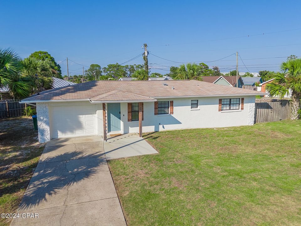 This quaint beach cottage was recently filmed and is in a recent episode of Beachfront Bargain Hunt Renovation on Magnolia Network! You can make this updated 2 bedroom, 2 bath beach home yours for personal use or for an income producing property. Great location on Panama City Beach, just blocks from Beach Access #7 and near the popular Schooners Restaurant. St. Andrews State Park is nearby as well. The neighborhood is golf cart friendly, with NO HOA, and flood zone X with no flood insurance required. There are so many things to love about this home! The open floor plan includes an updated kitchen, large living room and dining area with low maintenance ceramic tile flooring throughout the house. The master bedroom has an ensuite and a large walk in closet. The back yard has a privacy fence making it a perfect place to relax in your gazebo. There is a one car garage and also a sprinkler system. The side yard is large enough to hold a boat and there are boat launches located nearby. Extra blown in insulation was added in the attic approximately 2 years ago making the home more energy efficient. Furnishings convey, only personal items will be removed. This is the perfect home to enjoy personally, or use as a short term or long term rental. Don't miss out on this opportunity to own on Panama City Beach! Call your favorite Realtor today to view this home. All sizes are approximate, buyer to verify if important.
