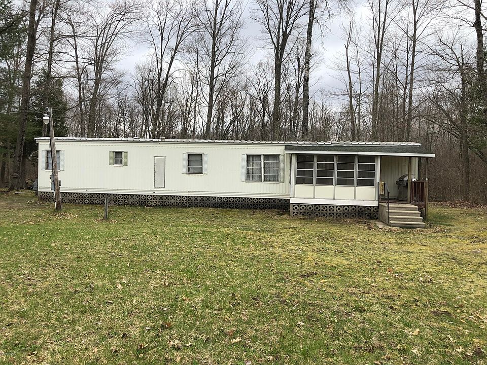 1000' frontage along Little Sable River and two parcels too! Dock to stay. Refrigerator and stove, dining table, most furniture, pots , pans, dishes , window air conditioners, a TV, custom firering, lawn mower can all stay! This 1974 Sterling singlewide has a cement slab/crawl space, the septic tank was pumped out in Fall of 2017. and has a 4'' submersible well. Two berooms, but possible to convert large utility room to a 3rd bedroom. ( needs closet and one of the entrance doors, enters into this room.) Buyer to verify ordinance and feasibility of making a 3rd bedroom, and confirm all information, including if adjacent lot is buildable. Wonderful and frontage on Little Sable River, no hill. NEAR Ford lake, park,& Trails! taxable ,SEV ,taxes, lot size for combined parcels.