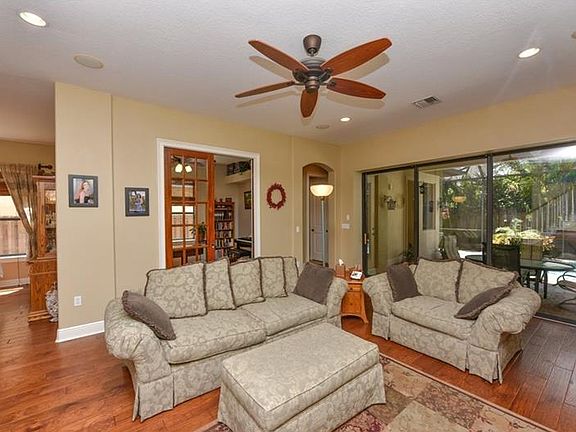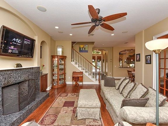 This gorgeous custom residence is in immaculate condition and offers a spacious floor plan that is ideal for entertaining. As you drive into this private gated neighborhood you will appreciate the paver drive & tile roof of this beautifully landscaped home located within 7 minutes from Siesta Key Beach. From the moment, you step through the front door, you will notice a fine array of upgrades throughout the home including hand-scraped hardwood floors, designer built in niches, wood burning fireplace, arched walkways, built-in wood cabinets, tray ceilings with crown molding, designer fixtures and fans. The chef of the home will love this well-appointed kitchen, featuring rich cherry wood cabinetry, granite, stainless appliances, a stylish tile backslash, island, breakfast bar and a charming dinette area that is perfect for enjoying your morning coffee. The great room features a built-in media center with surround sound and sliding glass doors that showcase the tropical backyard. There is a den/study with French glass doors and wood floors. A stately Owner's master suite with tray ceiling also has his and hers closets, stone tile detail in shower, cherry wood vanities & framed mirrors. Relax outdoors on the screened lanai complete with outdoor kitchen, heated salt water pool & spa w/paver deck, landscaped perfectly for privacy and poolside entertaining. Other features: large upstairs bonus room, 3.5 car garage with fantastic storage and workbench, 10' ceiling, newer pool motor & heat pump.