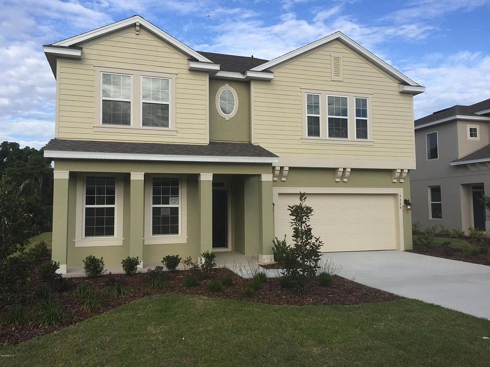 Desirable, gated community. Great house for the active lifestyle. Light colors throughout. Four BR's and 3.5 baths. Very open kitchen/great room area. Formal DR (a room that can have many uses). Master BR downstairs, lg bath, double vanities, garden tub, walkin closet. Large tiles and carpet. Laundry room. Half bath. 3 BR's and 2 baths upstairs and landing area for TV, children's study, etc. All BR's have walkin closets. Two car garage. Lanai. Landscaped. Cul de Sac street. Premier lot (no neighbors in the rear of house). Very nice community pool area. Built in 2014 by JD Horton Builders. Ready to move in! Convenient to I-75, malls, great restaurants, hospitals and College of Central Florida. Verify schools.