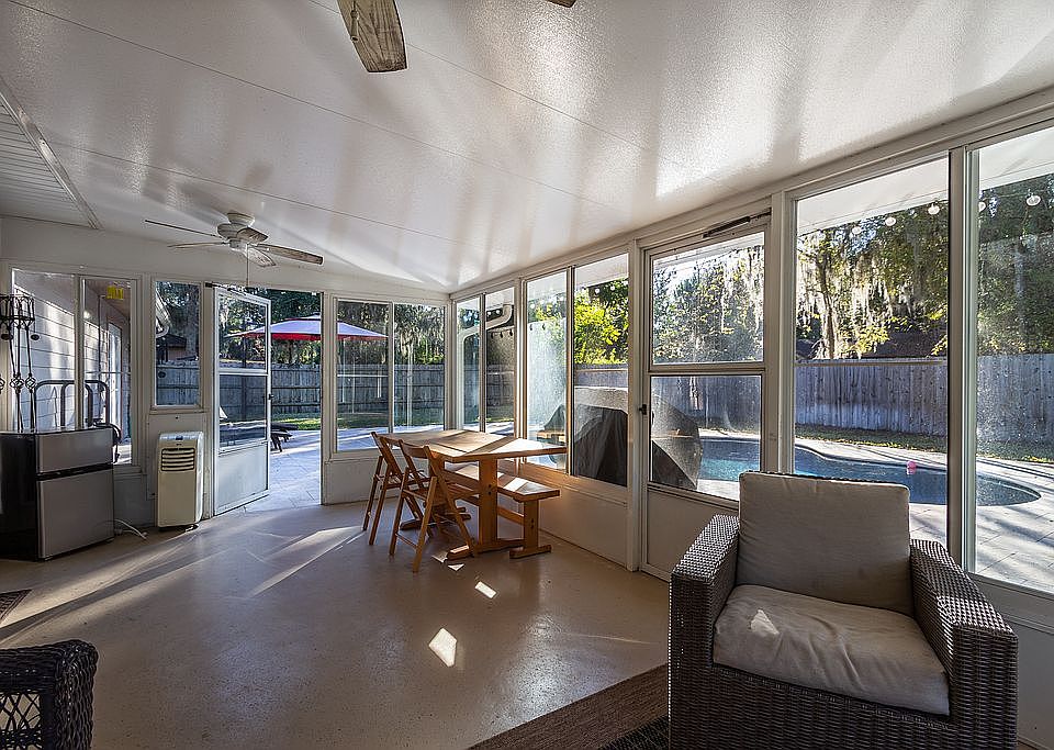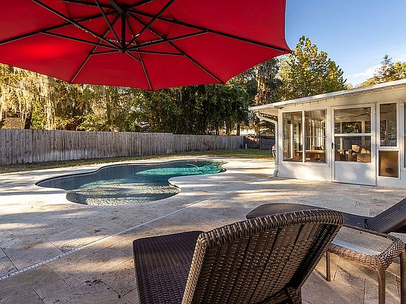 Cute and move in ready!! This home is light and bright and already updated! Simulated wood in bedrooms, ceramic tile throughout rest of home. Corner fireplace, vaulted ceilings and skylights. Walk in closet in master bedroom with french doors that lead to outdoor patio with pool. Glassed in sun room allows for extra space to enjoy your private backyard. Large two car garage. Beautiful 3 year old salt water pool with large travertine pool deck. Large yard with irrigation system. Call owner for more info 352-361-3360