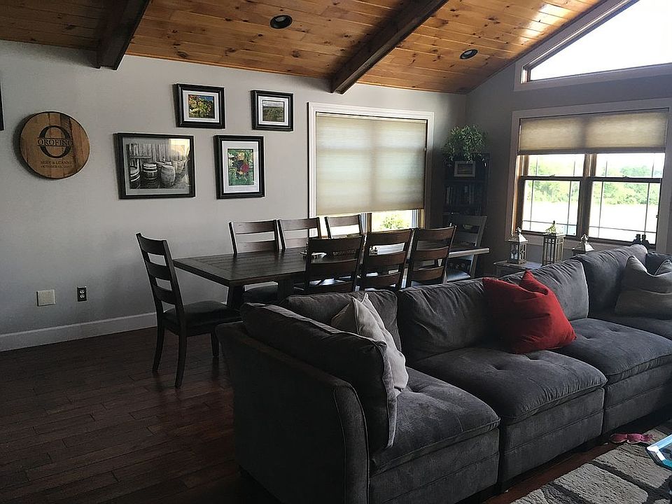 Spectacular and beautiful home !! Gorgeous newer home and turnkey furnished! Furnishings are negotiable. This property is on just under an acre of beautiful rambling farmlands. This beautifully furnished Single family 4 bedroom 4 bath home is a beautiful open living space ! Fabulous vaulted 12 foot ceilings with transom windows and luxurious wooden ceilings flood the space with light. There is a magnificent custom built ultra sized lodge styled stone fireplace. A chefs kitchen compliments the open dining area. Gorgeous hardwood floors add a comfortable elegance and lead to a cozy den and wonderful master bedroom and bath. There is a second attached private living quarters and is a beautifully furnished 2 bedroom, 2 bathroom totally separate in law or extended family unit. Each living quarters is a separate private living space connected by a common heated and air conditioned garage. Each unit is completely self contained with separate utilities, basements entrances and exits. This original farmhouse was completely redone in 2007. The 2nd attached unit is also completely brand new construction. Both units have separate utilities, new electrical, and plumbing, including new HVAC in each unit. . All new! A beautiful contemporary single family home with a private self contained living quarters on just about an acre of Tuscan style landscaping and gorgeous postcard views! The outdoor areas are spectacular. Enjoy a new extended raised deck and a pergola covered stamped concrete patio with an authentic wood burning Tuscan oven. There is also an open hearth stone fire pit. The front of the property is a combination paved parking and landscaped lawn area with a beautiful stamped concrete decorative path opening to gorgeous Tuscan style views. This property is located in the Fingerlakes region between two lakes and the quaint village of Skaneatelas and the historic city of Auburn. This home is also in the highly acclaimed Skaneateles School District which adds a great value! The property is also highly desirable VRBOS and booked for summer and bookings requested for fall and winter 2020/21. Please refer to VRBO listings Check our these two listings on VRBO :684689 and 1402612. If you are interested please contact Mike at 315-246 2916. mikeodtd@gmail.com