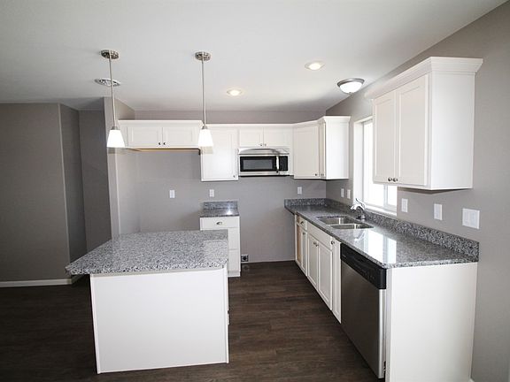 Check out this show stopping one-level townhome located in SE Minot's 55th Crossing! Featuring 2 bedrooms, 1 bath and an attached garage. You will immediately be impressed by the quality finishes this home has to offer; bull-nose corners, neutral paint, white six panel doors/mill work, modern fixtures and more! Walking in you are greeted with a spacious living room that is open to the dining area and kitchen. The dining area has a sliding door that leads to the 12x12 concrete patio and vinyl privacy fenced. The kitchen features modern white colored cabinetry, granite countertops, undermount sink, and a 4 piece stainless steel appliance set. The master bedroom is generously sized with carpeting and on the opposite end of the hall is bedroom 2. Both bedrooms have quick access to the full bath with dual sinks and lots of counter space. There is also a bonus desk space with floating shelves in the hallway. The laundry room is conveniently located in a closet right off the garage entrance. Located in close proximity to the new Nedrose school for added convenience! Quality workmanship and materials provided by local subcontractors and vendors. Lower heating bills, low maintenance and a 1 year builder warranty when you buy new!