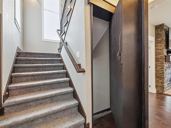Stunning two-story home on a corner lot in a cul-de-sac. Enter your home to a two-story entry with built-in storage bench. Continue into the open living area w/spacious great room featuring a double-sided gas fireplace. The French doors on each side of the fireplace open to a separate space you can use to fit your lifestyle. The kitchen features granite counters, soft-close drawers and doors, large island, double ovens, tiled backsplash, and walk through pantry. The half bath and mud room are not to be missed. On the second level you will find a master suite with a lighted tray ceiling, tiled rain head shower, jetted tub and large walk-in closet. 3 additional bedrooms, a full bathroom & laundry complete the second level. Entertain in your finished walkout basement with wet bar & surround sound. Downstairs is a 5th bedroom and full bath. Entertaining continues outside. From your walkout basement enjoy a fire on the patio, hours of entertainment on your outdoor basketball court or relax, watch TV on the covered deck.