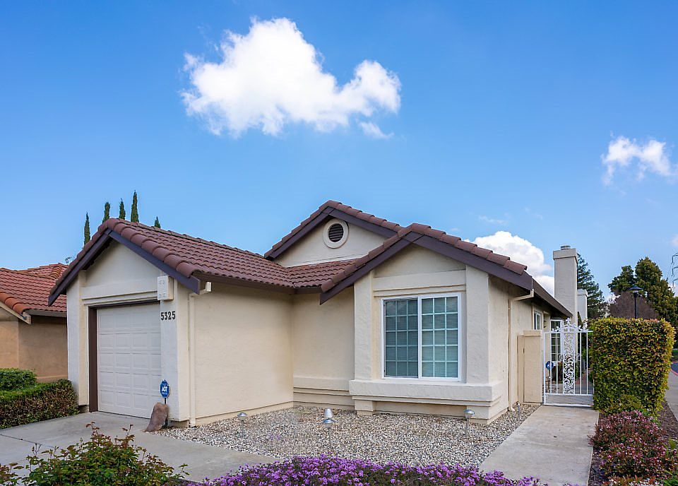 Charming single story in Park Pavilion on a large corner lot! Open floor plan with neutral decor! Spacious living room offers bay window nook, ceiling fan, cozy fireplace & slider to backyard. Kitchen includes tile counters, ample cabinets & opens to dining area. Master bedroom features semi valued ceiling & dual closets with mirrored doors. Master bath boasts stall shower with enclosure. Inside laundry closet offers washer/dryer. Updates include: new carpet, dual pane windows, newer HVAC & interior paint. Private & Low maintenance backyard offers big aggregate patio area with brick trim & well manicured landscape including mature trees, colorful roses & ornamentals. Walking distance to shopping, dining, & transportation!