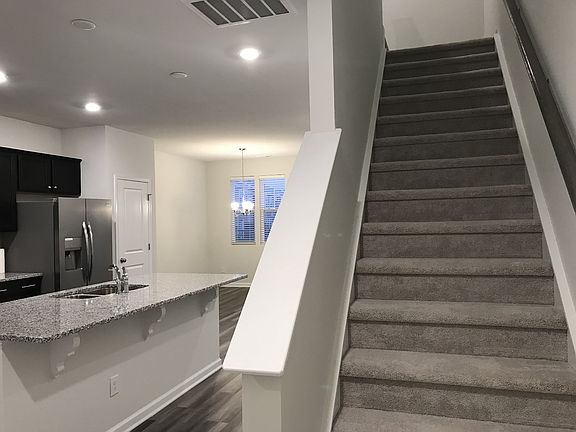 3BR, 3.5BA, 1785 sqft 3 story townhome with 1 car garage, washer/dryer included Great location at intersection of 540 and 401N. In a planned master community of 5401N with swimming pool and club house. Spacious plan with granite counter tops in kitchen, stainless steel appliances and tile in bath room. Walking distance to Wake Tech and community schools Renter pays for utilities, water/trash, internet.HoA maintains outside and lawn maintenance. Owner pays HoA and community center dues for swimming pool and club access. No smoking and subletting allowed.